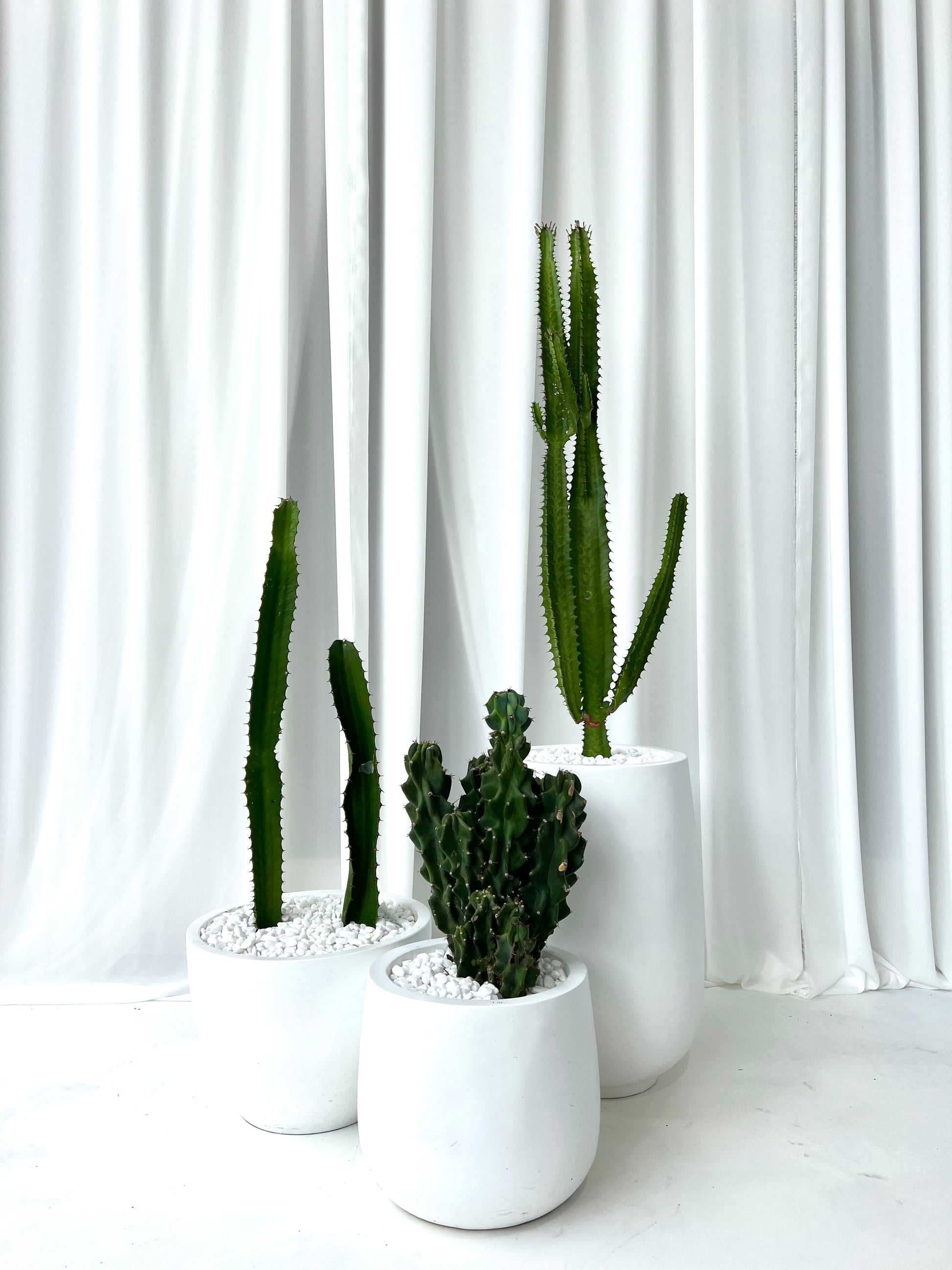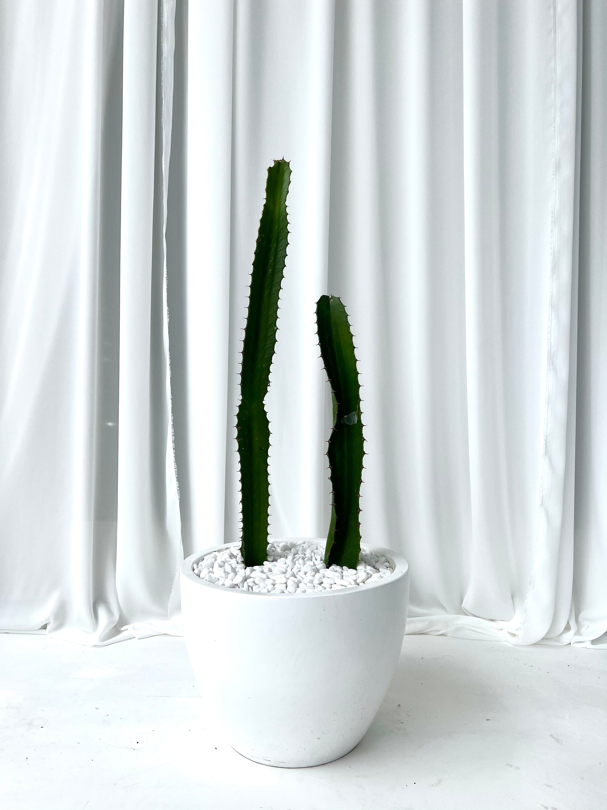 Cowboy Cactus in White Fibre Stone Egg Pot