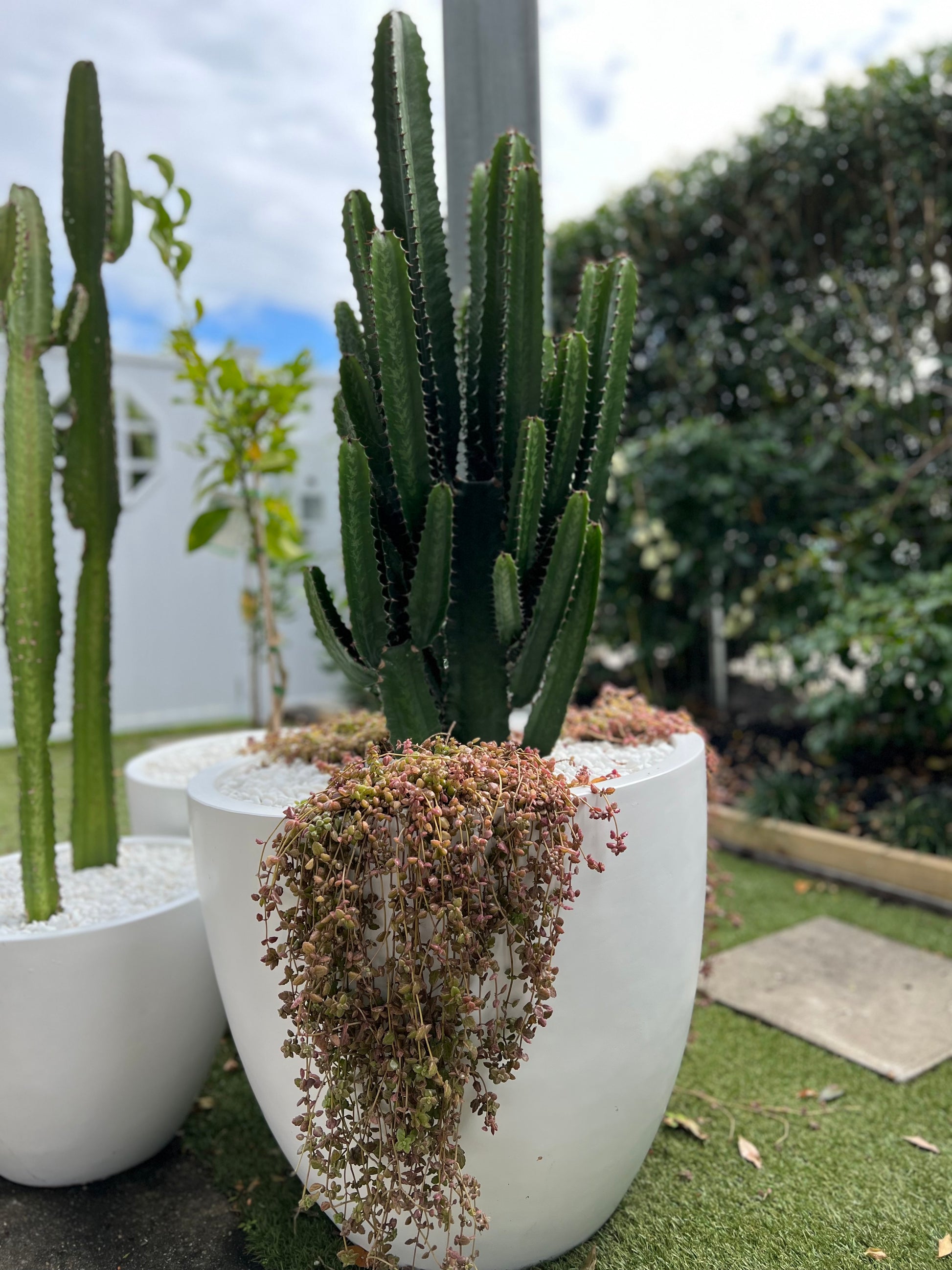 Cowboy Cactus in White Fibrestone Egg Pot.