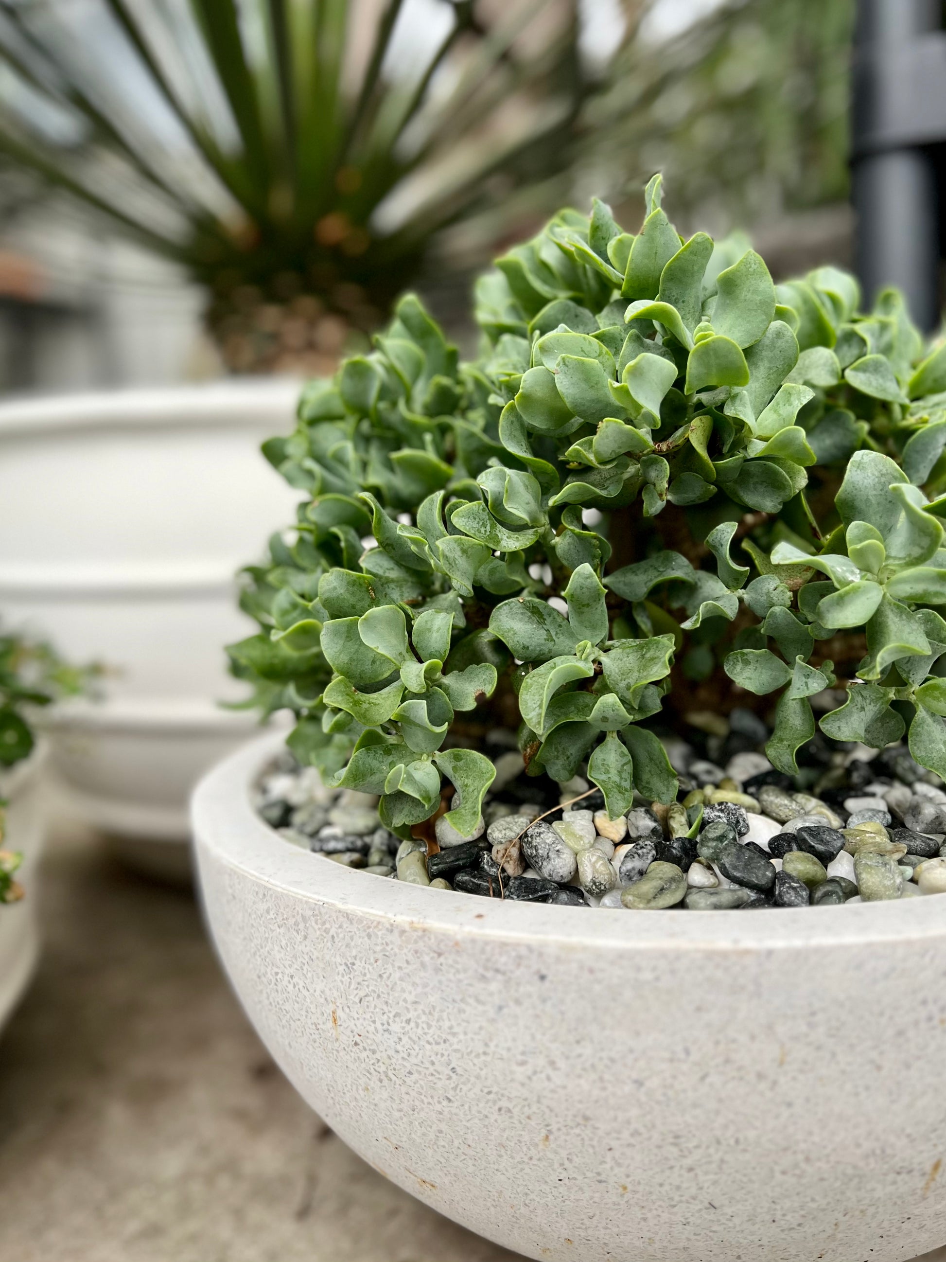 Wavy Jade Succulent in Small White Terrazzo Bowl